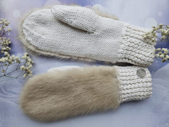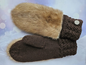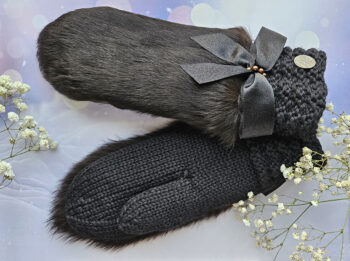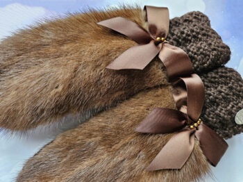 Roku darbs, adīti dūraiņi ar ūdeļādas kažokādu un flīsa oderi. Unikāla kažokādas krāsa.