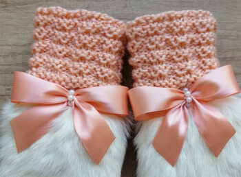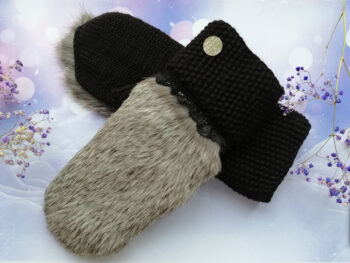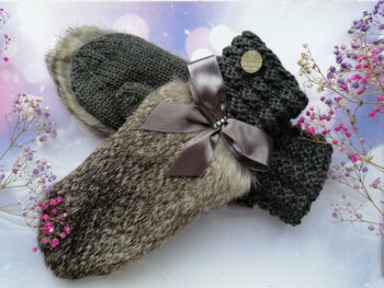 Roku darbs, adīti dūraiņi ar truša kažokādu ar flīsa oderi.
