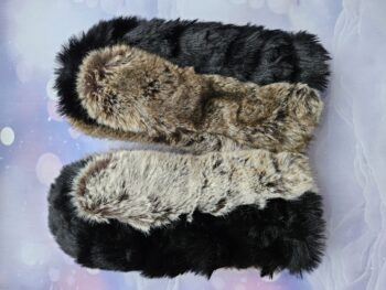 Roku darbs, dūraiņi no mākslīgās kažokādas ar iestrādātu flīsa oderīti.