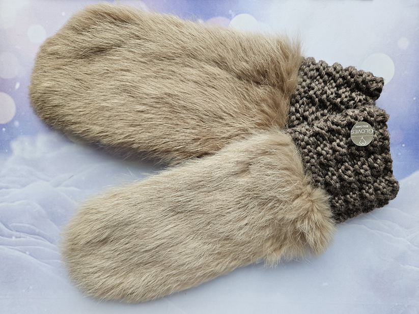 Roku darbs. Adīts komplekts ar truša kažokādu.