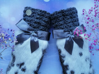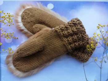 Roku darbs, adīti dūraiņi ar truša kažokādu un flīsa oderi.
