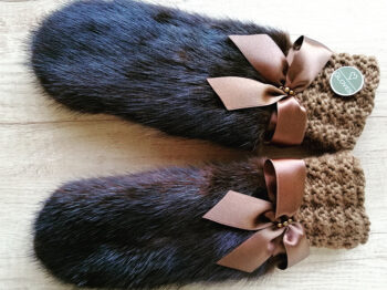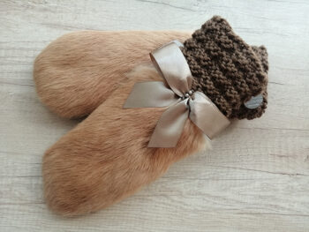 Roku darbs. Adīts komplekts ar truša kažokādu.