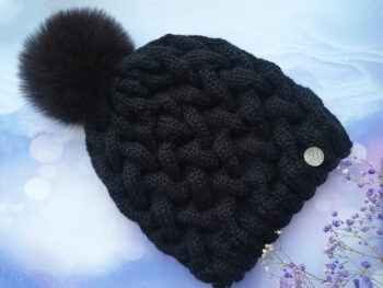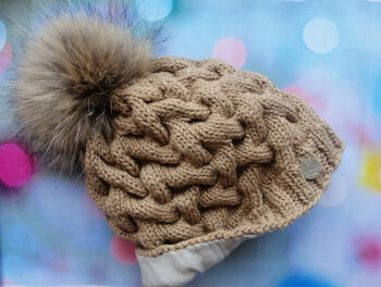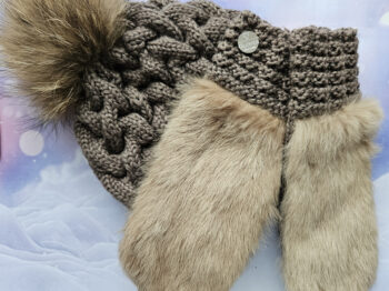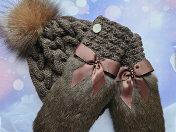 Roku darbs. Adīts komplekts ar truša kažokādu.