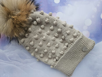 Roku darbs, adīti dūraiņi ar ūdeļādas kažokādu un flīsa oderi. Unikāla kažokādas krāsa.